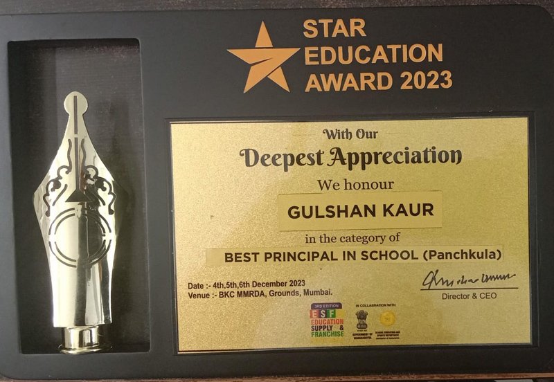 Respected Principal Maam Ms. Gulshan Kaur has been Awarded at Star Education Award 2023 held by ESFE in collaboration with the Education Department of Maharashtra.