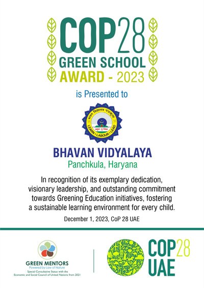 BHAVAN VIDYALAYA PANCHKULA WON THE PRESTIGIOUS CFORE SCHOOL EXCELLENCE AWARD WITH RANK NO. 1 IN SCHOOLS ACROSS HARYANA. WE CONTINUE TO GROW,STRIVE AND ACHIEVE MORE SUCCESS!