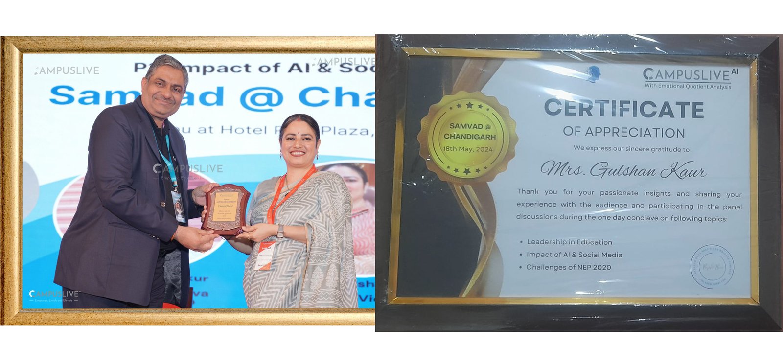 Respected Principal maam bestowed with eminent guest award by CAMPUSLIVE