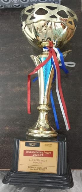 Bhavan Vidyalaya Panchkula under the able leadership of Respected Gulshan Maam becomes the proud recipient of Educational Excellence Award (2023-24)