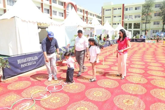 Bhavan Vidyalaya, Panchkula hosted an exciting academic carnival for learners of Grade I and II, transforming the campus into a vibrant arena of joy and enthusiasm. Themed around sports, the event aimed to encourage young students to embrace physical activity while integrating curriculum joys. The carnival featured a variety of engaging games of both academic and sports, ensuring an enriching experience for every child. From skill based challenges to interactive educational games, songs, dance and rhymes, the event seamlessly blended sports with learning.