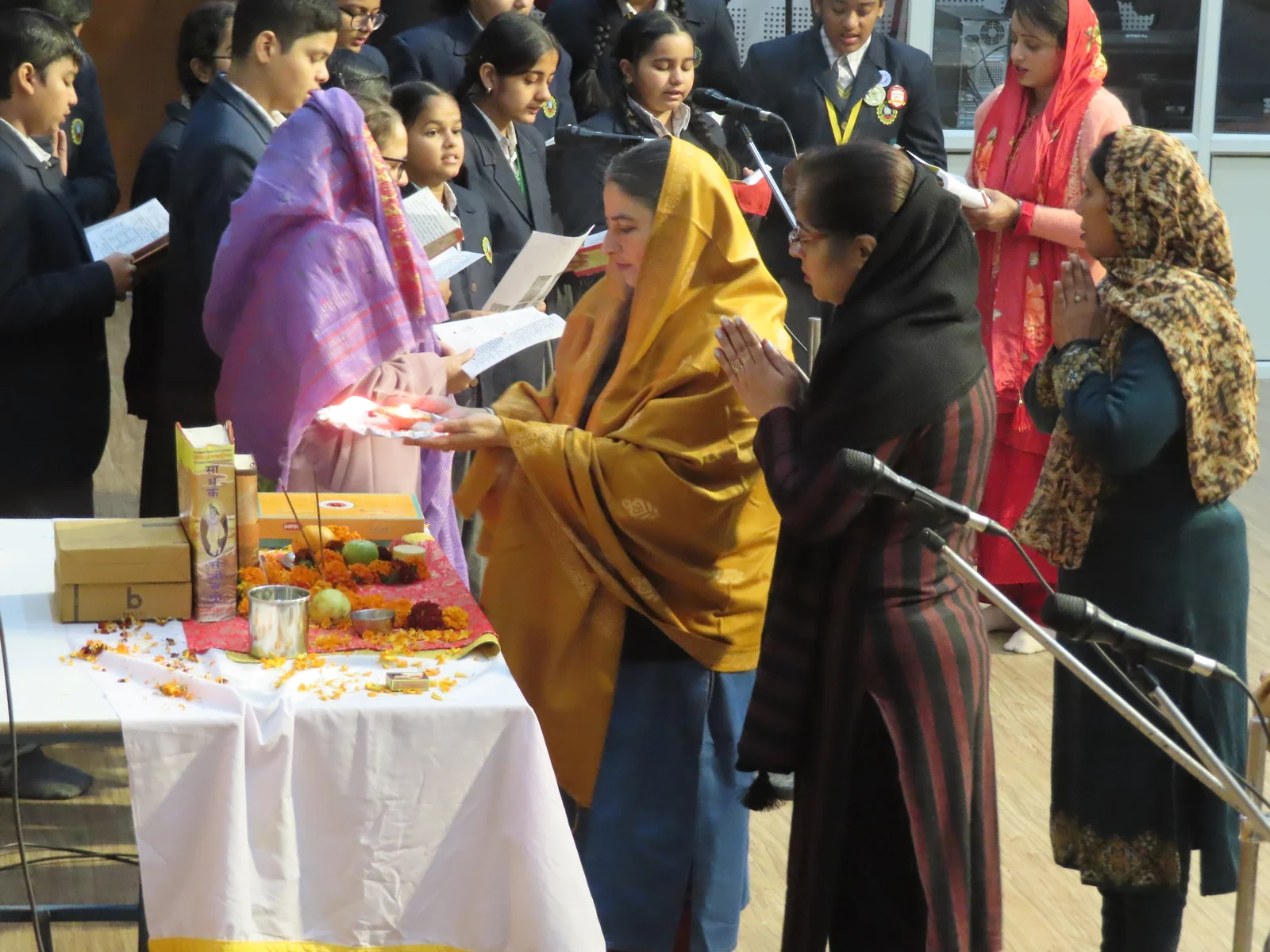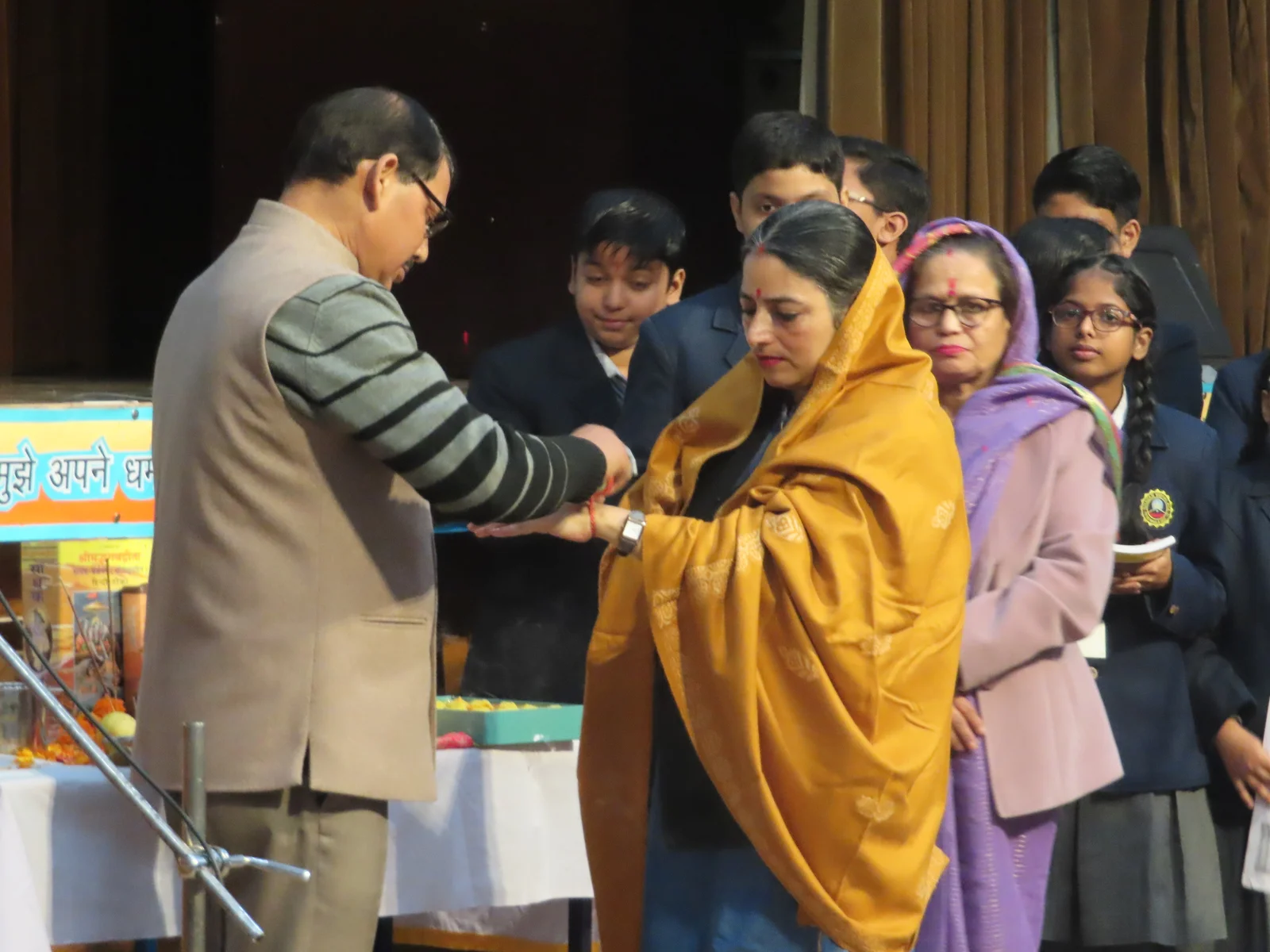 प्राचार्या ने संस्कृत विभाग की अध्यापिकाओं, श्रीमती ऊषा शर्मा और श्रीमती इंदु बाला के योगदान की भी भूरि-भूरि प्रशंसा की। कार्यक्रम का समापन गीता जी की आरती और प्रसाद वितरण के साथ हुआ।