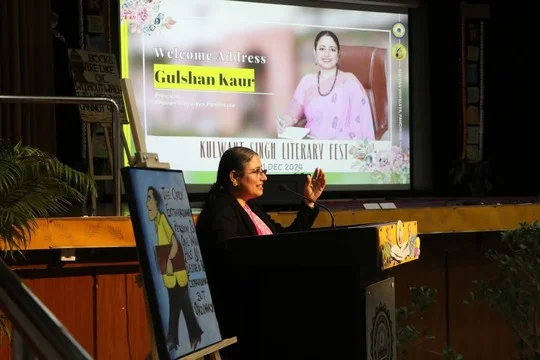 Bhavan Vidyalaya Panchkula hosted its third Kulwant Singh Literary Fest 2024’ on December 20 and 21, 2024, which unfolded as a vibrant symphony of literature, art and culture, weaving together stories, ideas and creativity into an unforgettable tapestry of inspiration and imagination. The event commenced with a formal welcome that included lamp-lighting ceremony, Shloka Uchharan, and an invocation of Goddess Saraswati , setting a spiritual and intellectual tone. A heartfelt tribute was paid to Late Sh. Kulwant Singh, Founder Chairman Bhavan Vidyalaya Panchkula and Former Chief Secretary, Haryana by the Members of school management and all the dignitaries present. Ms. Gulshan Kaur, the Principal welcomed all the dignitaries. The fest featured a series of thought-provoking sessions, workshops and a book fair. The fest began with the keynote address by Ms. Rajni Sekhri Sibal, IAS (Retd.) Another key highlight was ‘Drishtikon: Snapshots and Scripts’, a discussion featuring the author couple Mr. Ashok and Ms.Novel Lavasa in conversation with Dr. Jyoti Singh. Adding to the intellectual vigour of the fest, TedEx speaker and Former IAS officer Mr. Vivek Atray presented an engaging session on the Power of Eloquence, focusing on the art of public speaking. The event also highlighted Glimpses of Literary Treasures and the release of Abhivyakti, an e-treasure of creative expressions. The Book Fair by scholastic added special grace to the event. The day one of the fest culminated with national anthem.