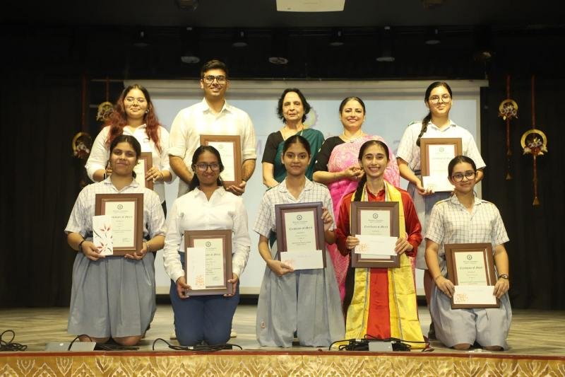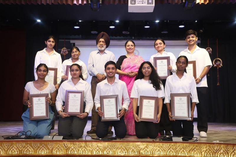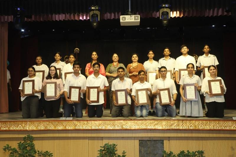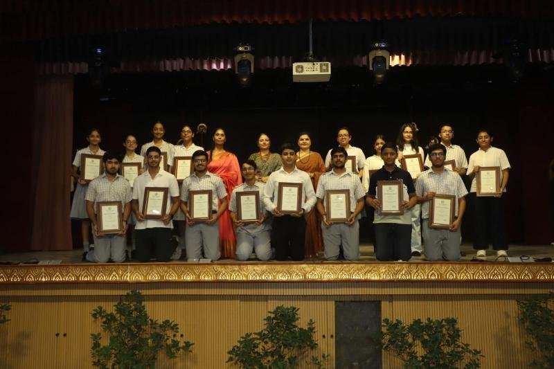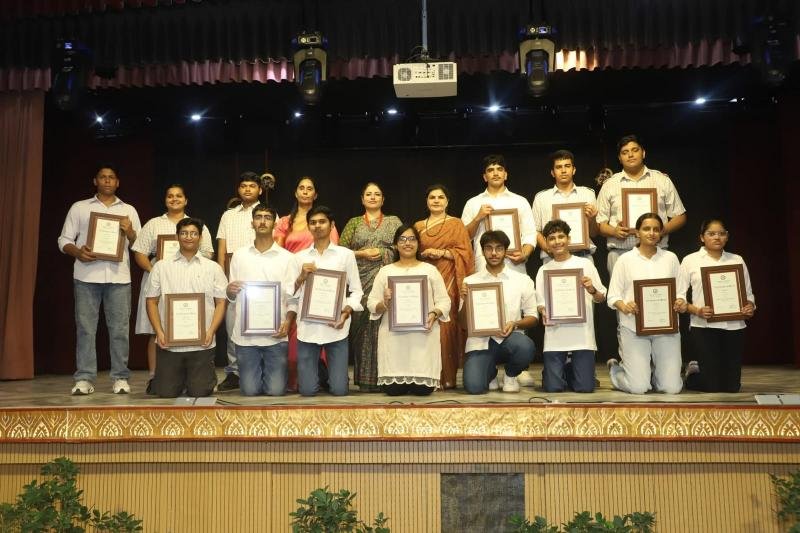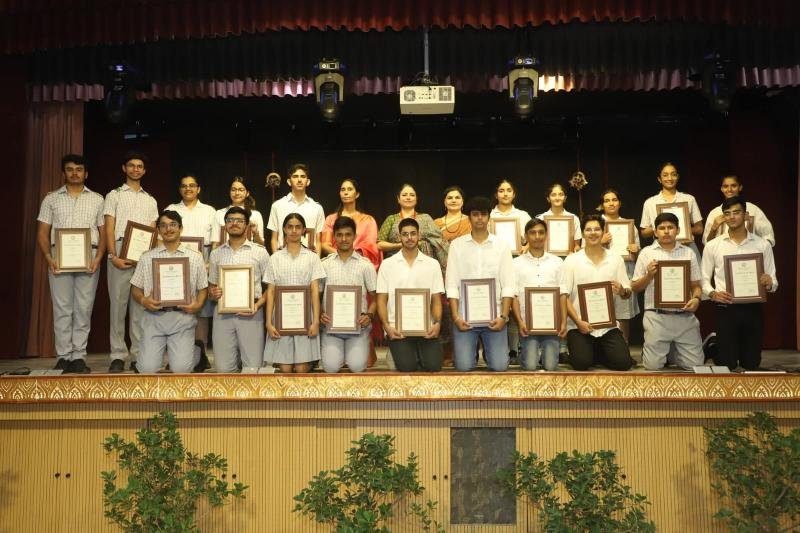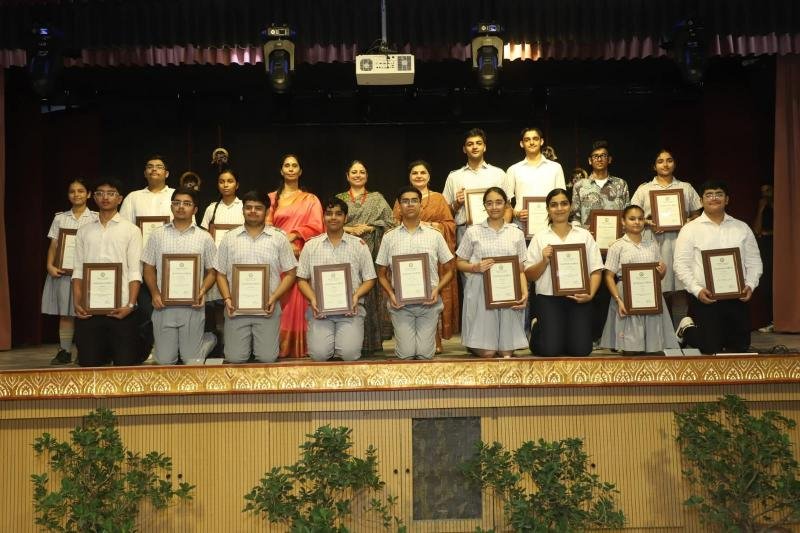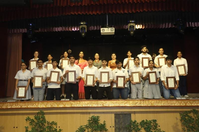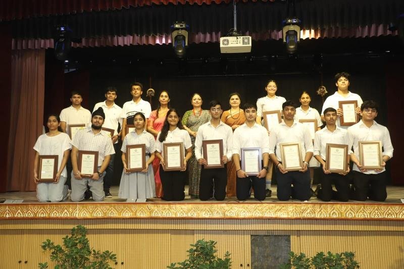 Notable awards included the Student of the Year Award, which was conferred upon Ayaan Aggarwal of class X and Anvi Muradia of class XII. Abhimanyu Yadav and Ishika Panghal of class XII were presented with the Major Sandeep Sankhla School Time Achievement Award. Aseesjot Singh (Class XII) was awarded Sh. Kulwant Singh Medal for Holistic Excellence, recognizing his all-round development and exemplary performance across academic and co-curricular domains. Principal Mrs. Gulshan Kaur praised the school staff for their dedication and commitment to academic excellence and value-based education. Medha Manyata Divas serves as a proud reminder of Bhavan Vidyalaya's enduring legacy of academic distinction and holistic development.