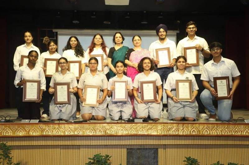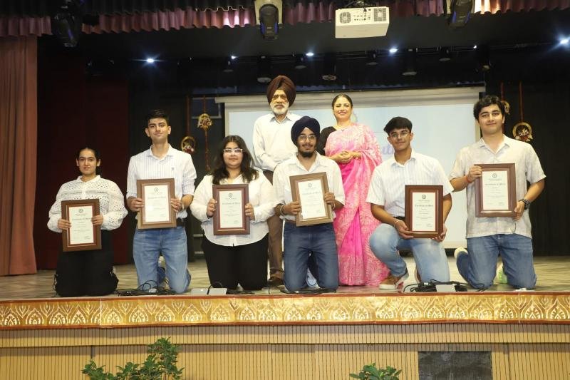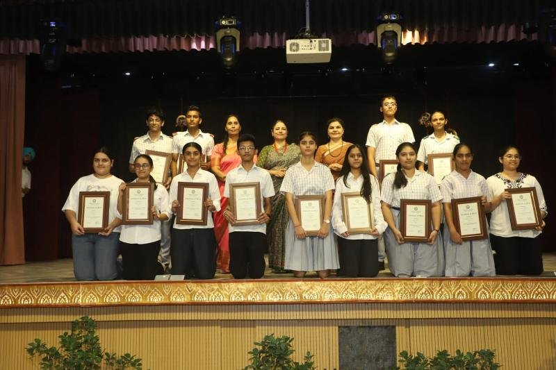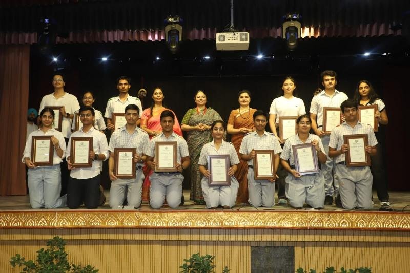 Bhavan Vidyalaya, Panchkula hosted its Annual Prize Distribution Function, ‘Medha Manyata Divas’, with great enthusiasm and grandeur. The event was held over two days, on July 23 and 25, 2025, to recognize and honour the outstanding achievements of students for the 2024–25 academic session. The celebrations began with the lighting of the ceremonial lamp by the Principal and the members of Management. It was followed by an inspiring TED Talk-style session ‘Achievers’ Talk’ featuring the school's top achievers and CBSE Board exam toppers. Students from Classes X, XI and XII interacted with these trailblazers, gaining valuable insights and motivation.