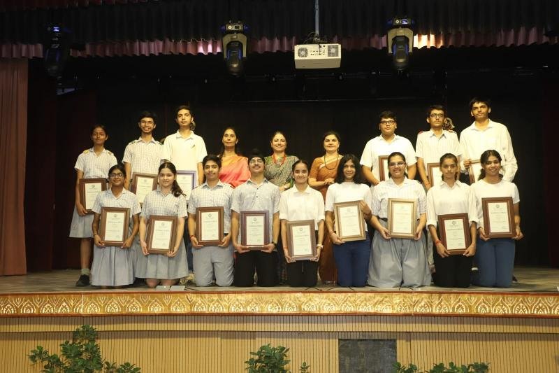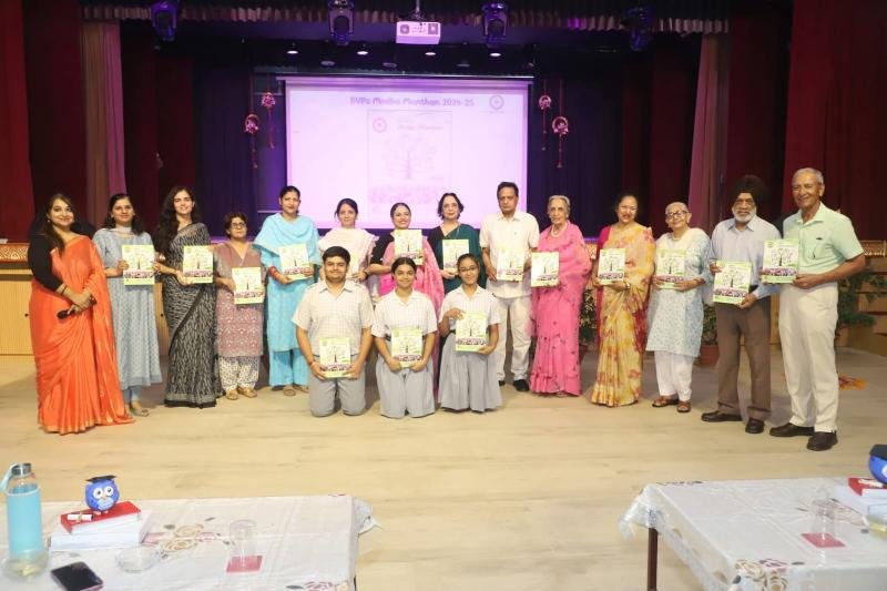 The school’s annual magazine, ‘BVP’s Medha Manthan 2024–25’was released by the Principal Mrs. Gulshan Kaur and the School Management. Nearly 330 students were felicitated for their exceptional performance in academics and co-curricular activities. Srishti Sharma, the Class X CBSE National Topper and Akshita Jain, the Class XII CBSE Tricity topper (Non-Medical Stream), City Toppers Maanas Sidher (Commerce Stream) and Kimaya Aggarwal (Humanities Stream) and Medical stream School Topper Ishika Panghal were honoured during the event.