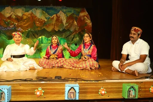 The esteemed members of school management graced the occasion along with the worthy Principal, Ms. Gulshan Kaur. The event commenced by lighting the lamp of knowledge and wisdom by the revered guests. This was followed by depiction of the rich cultural heritage,festivals, sports, cuisine and economic growth of Himachal through mesmerising dances and songs interwoven in a well-crafted narrative. The wonderfully sung song by the students depicting folklore of Kunju- Chanchalo alongside the captivating tunes of the orchestra not only created a lively mood but also introduced the audiences to the traditional beat, sync and accent of himachalites. The exhibition of Himachali paintings and artifacts along with the vibrant dances like 'Luddi', 'Jhamakra', 'Gidda' and 'Thoda Dance' and 'Pahari Nati' served as a treat to the eyes of the spectators.The various art forms like pictures, paintings and local handicrafts showcased the rich cultural heritage of Himachal.For guests and visitors, the event offered a great cultural immersion. The management committee congratulated the Principal for her visionary leadership and acknowledged the fact that Bhavan Vidyalaya is a landmark of excellence in the field of education. The staff and the students were appreciated for the great efforts put up by them.