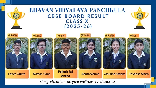 Bhavan Vidyalaya Panchkula has once again reaffirmed its stature as a centre of academic excellence, with its students delivering outstanding results in the Class X board examinations. This achievement marks yet another proud milestone in the school’s legacy of success.