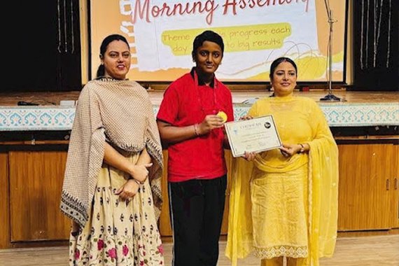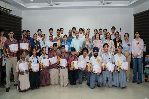 Rachit Ahuja of class XII (session 2023-24) was felicitated in glittering ceremony held at New Delhi for his performance in Olympiads of various subjects. He received the Silver Zone Olympiad Topper Award 2023-24 for overall academic excellence and a cash prize of 7500/- for securing state rank 1, zonal rank 1 in level 2 of English Olympiad. He is also awarded with a medal, a certificate and a cash prize of rupees 2500/- for his exceptional performance and securing zonal rank 2 in SOF Maths Olympiad. Apart from this, he is also bestowed with medals for state rank 1 in Maths Olympiad and state rank 2 for science Olympiad. The Principal Mrs Gulshan Kaur congratulated the student.