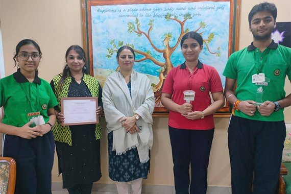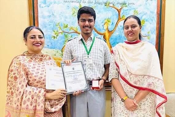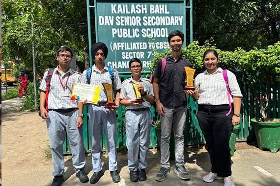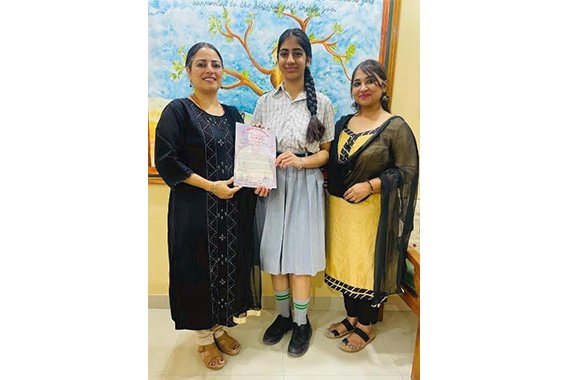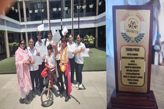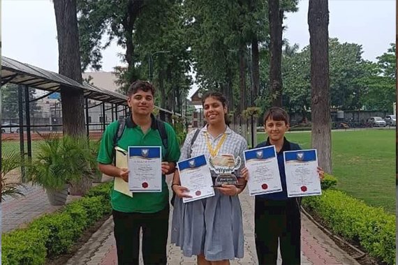 Guided by Ms. Megha Bhardwaj, the team members — Mansi Tiwari (XII B), Sarthak Pandey (XI B), and Aditya Dixit (XI B) — brought laurels to the institution with their commendable performance.स्कूल, सेक्टर 16, पंचकूला में आयोजित हुई।