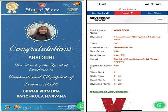 Two students of Bhavan Vidyalaya, Panchkula brought pride to the institution by achieving outstanding success demonstrating exceptional knowledge, skills and dedication towards their respective subjects earning them a coveted spot in the OCSC and IMOTC.