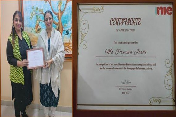 Heartiest congratulations to Ms. Prerna Joshi on receiving a Certificate of Appreciation from The Times of India for her invaluable contribution in inspiring students and successfully conducting the Newspaper Influencer Activity!