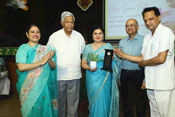 Mrs. Sonia Pabby, Vice Principal of Bhavan Vidyalaya Panchkula, was honoured for her remarkable 25 years of dedicated service to the institution.