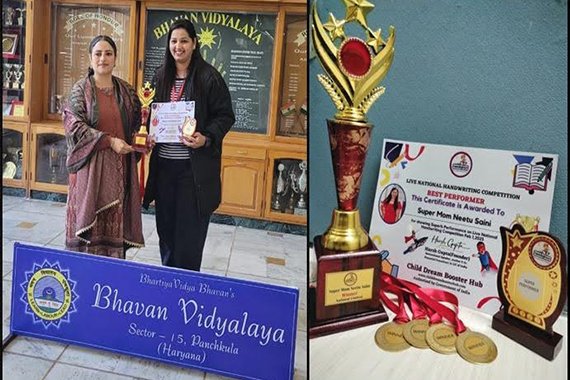 Ms. Neetu Saini, our talented dance faculty, has been honored with the *Best Performer Award* for her exceptional performance at the *Live National Handwriting Competition* organized by Child Dream Booster Hub.