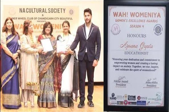 Incredibly delighted to share that Ms. Arpana Gupta has been honoured with the prestigious *WAH! WOMENIYA – Women's Excellence Awards* at an event organized by NA Cultural Society & Inner Wheel Club, Chandigarh City Beautiful. This award recognizes her unwavering dedication to empowering women and making a lasting impact on society.