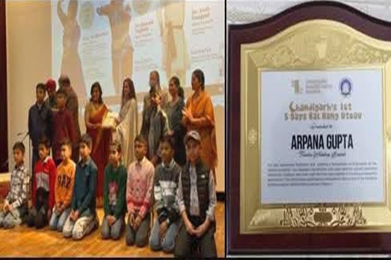 Ms. Arpana Gupta (Theatre Faculty) has been honoured with the *Theatre Workshop Expert Award* by the *Chandigarh Sangeet Natak Akademi* during *Chandigarh's 1st 5-day Bal Rang Utsav (Children's Theatre Festival). This prestigious award acknowledges her dedication and expertise in mentoring young theatrical talent, shaping the future of theatre with passion and commitment.